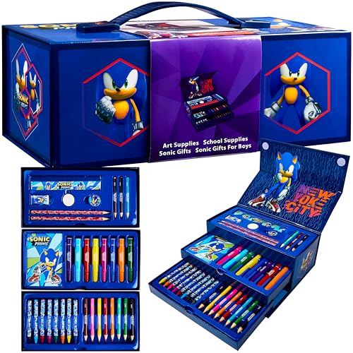 SONIC THE HEDGEHOG färgpennor konsttillbehör barn ritning kit skolmaterial färgläggning brevpapper flickor ritpennor tillbehör resväska med kritor konst och hantverk för barn 4-12