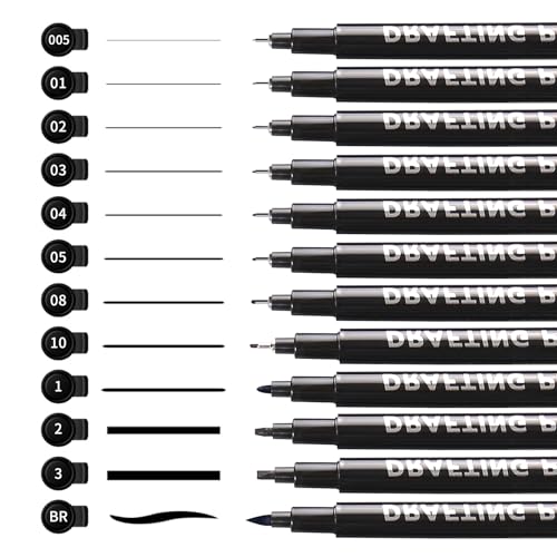 CRESZZLE 12 stycken ritpennor professionellt set, pennor att rita, syrafritt, smutsavvisande, vattentätt och ljusäkta bläck, perfekt för barn, konstnärer, tekniker