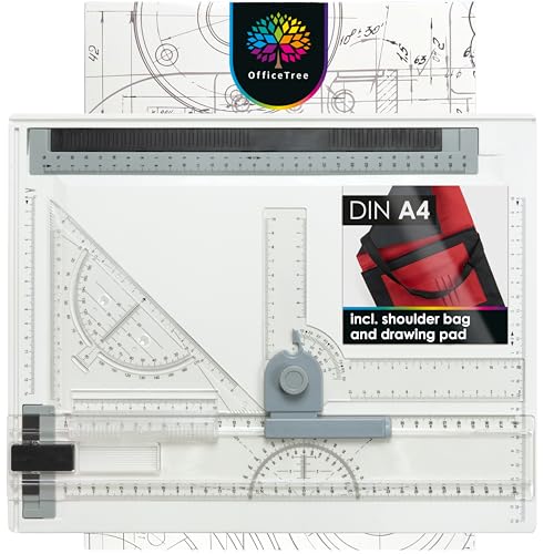 OfficeTree ritplatta A4 – inkl. bärväska, glidlinjal, triangulär UVM. - Ritbräda A4 för exakt arbete – DIN A4-ritplatta