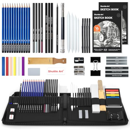 Shuttle Art skisspennor och ritset, 52-pack skissblock och pennset i robust blixtlåsfodral med kolpenna och skissböcker, professionellt ritset för konstnärer, vuxna