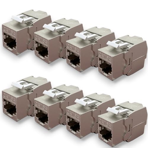 deleyCON 24x RJ45 Keystone-Modul Jack Verktygsfri (10 Gbit/s, 500 MHz) LSA Helskärmad STP-Hona LAN Patchkabel Ethernet för Cat8 Cat7 Cat6 Cat5 Kabel Nätverkskabel Vägguttag Patchpanel