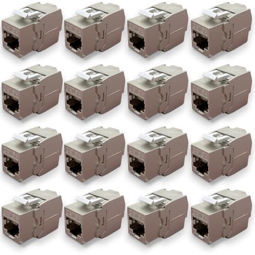 deleyCON 48x RJ45 Keystone-Modul Jack Verktygsfri (10 Gbit/s, 500 MHz) LSA Helskärmad STP-Hona LAN Patchkabel Ethernet för Cat8 Cat7 Cat6 Cat5 Kabel Nätverkskabel Vägguttag Patchpanel
