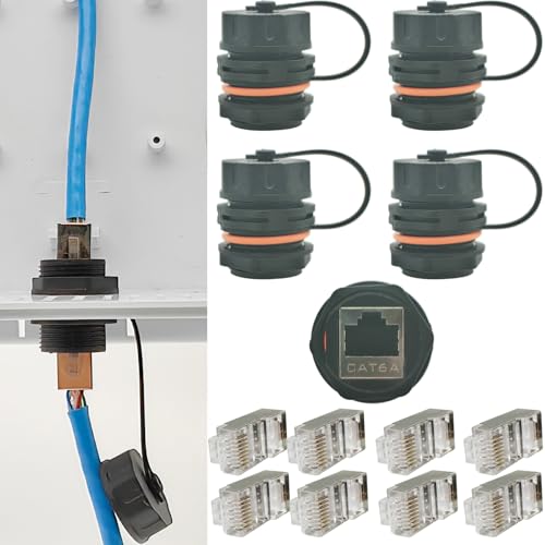 Vattentät RJ45-koppling, CTRICALVER 4 st CAT6A/6/5E/5 Ethernet-kabelkontakter + 8 st kristallhuvuden med skärmad industriell panelmontering nätverkskabel vattentät kontakt