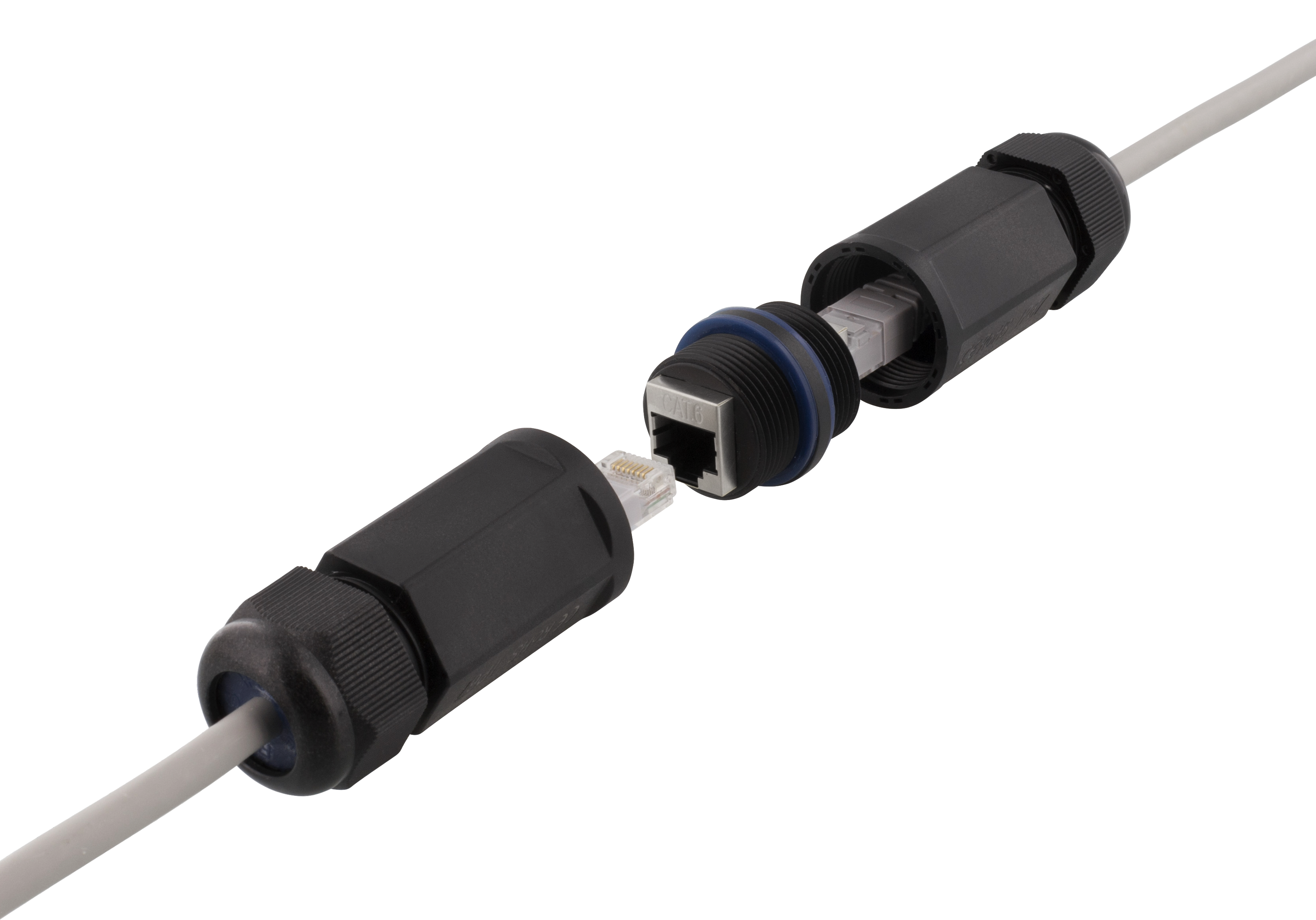 Skarvkontakt vatten- och dammtät skarv för patchkabel, DELTACO, 2x RJ45, Cat6, skärmad, IP68