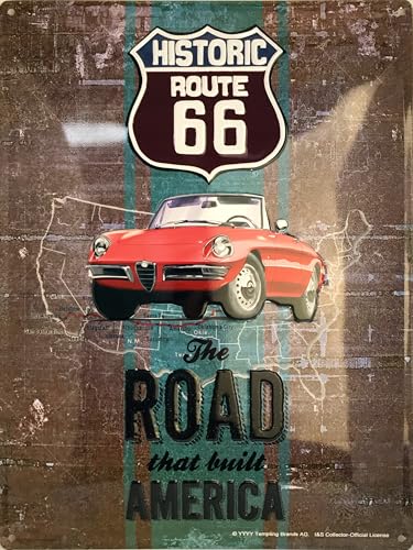 Nostalgic-Art Plåtskylt i retrostil, Route 66 Road Trip – Presentidé för bil- & motorcykelälskare, av metall, Deko vintagedesign, 30 x 40 cm