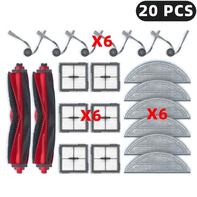 Homruich Tillbehör för Roborock Q10 X5/Q10 X5 dammsugare, 2 huvudborste, 6 torkdukar, 4 filter, 6 sidoborstar, Q10 x 5 reservdelar 20 stycken, Q10 x 5 ersättning