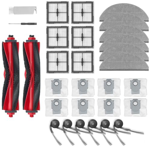 30-pack tillbehörssats kompatibel med Roborock Q10V/Q10 PF/Q10 V+/ Q10 P+/Q10 VF/VF+/P/PF+ robotdammsugare, inkluderar 2 huvudborstar, 6 moppkläder, 6 hepa-filter, 6 sidoborstar, 8 dammpåsar, 2