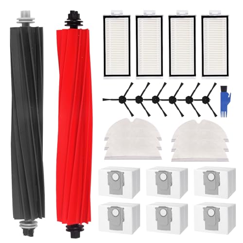 Loveco tillbehör reservdelar kompatibla med Roborock Q5 Pro Q5 Pro+ Q8 Max Q8 Max+, 2 huvudborstar, 4 filter, 6 sidoborstar, 4 mopptorkdukar, 6 dammpåsar, 1 borstrengöringsverktyg