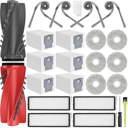 21 stycken tillbehörsset för Roborock Qrevo Curv S5X/Qrevo Edge S5V robotdammsugare, 1 huvudborste, 6 dammsugarpåsar, 4 torkdynor, 4 filter, 4 sidoborste, 1 rengöringstillbehör
