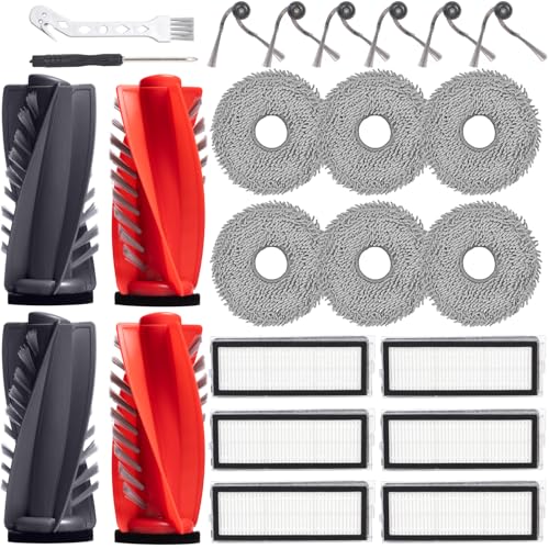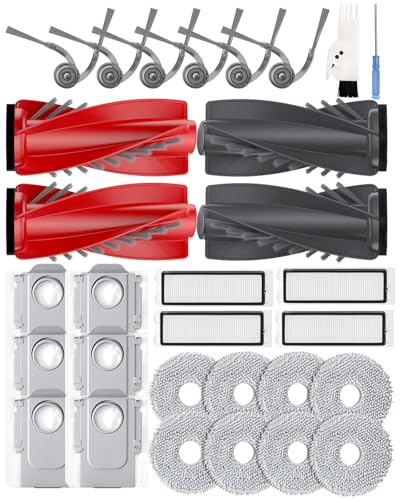 Yivy 30-pack ersättningstillbehör för Roborock Qrevo Curve/Curv/Curv S5X/Edge/Edge S5A/S5V/P20 Pro: 4 huvudborstar 6 sidoborstar 4 hepafilter 6 dammpåsar 8 moppdynor etc.