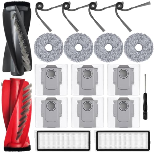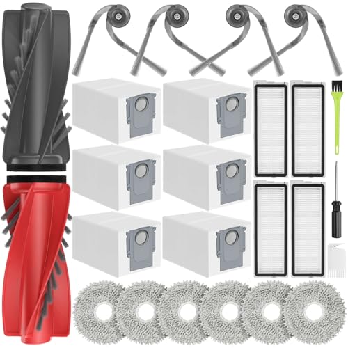 Tillbehör till Roborock Qrevo Curv/Qrevo Curv S5X/Qrevo Edge/Qrevo Edge S5A, JKOISL 1 x huvudinrullborste 6 x dammpåsar 4 x sidoborstar 2 x filter 4 x mopptorkdukar