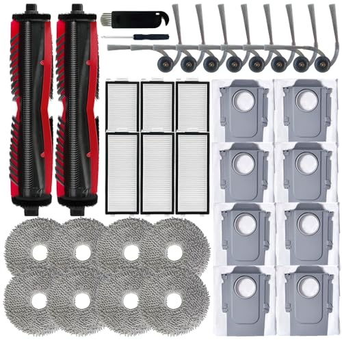 Ersättningstillbehörssats kompatibel med Roborock Saros Z70 robotdammsugare, inkluderar 2 huvudborstar + 8 sidoborstar + 6 HEPA-filter + 8 moppdynor + 8 dammpåsar