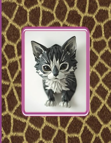 Cute Cat Robot in Pink Frame – Giraffe Border Notebook: Adorable Cat Robot Notebook – Sitting in Pink Frame with Giraffe Pattern Border – 120 Pages, ... 11 in – Great for Kids, Students, Cat Lovers