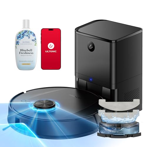 Ultenic T10 robotdammsugare med sugstation, 3000Pa dammsugarrobot med torkfunktion, laser-robotdammsugare, intelligent kort, 280 min. Drifttid, kompatibel med Alexa, App, fjärrkontroll, vit