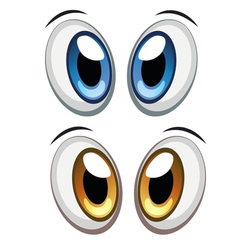 Ögondekal (2 par) – vattentäta och UV-resistenta dekorativa ögon för robotgräsklippare, robotdammsugare, bilar och hushållsapparater – självhäftande roliga klistermärken för inomhus- och utomhusbruk