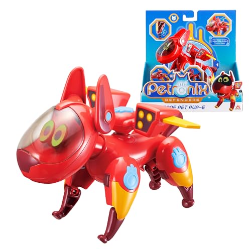 AlphaToys Petronix Defenders – Transformerande Max Mode Pet Pup-E, ca 12 cm stor lekfigur för barn, justerbar robothund med utfällbara vingar