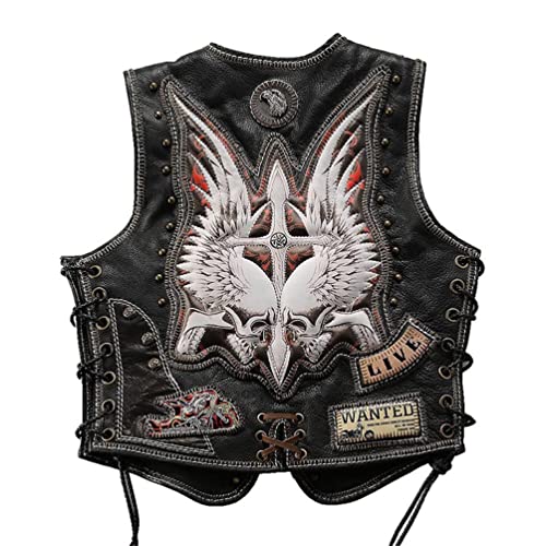 IFIKK Harley-väst broderad revers läderväst herr diagonal dragkedja midja, rep läder, motorcykelväst rock punk tung metall olja vax läderväst, Svart6, L