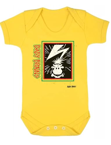 Baby Moo's Baby Brains Punk Baby Grow | Unisex Cool Bad Brains Musik Bodysuit Väst - Alternativ Punk Rock Ny Baby Present UK, gUL, 3-6 månader