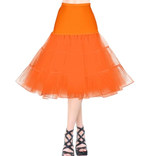 AYBUY 50-tal retro underkjol, vintage A-linje underkjol klassisk elastisk rockabilly tutu-kjol för damer halvslip utklädningsfester dans, halloweenfest, dans, Orange, M