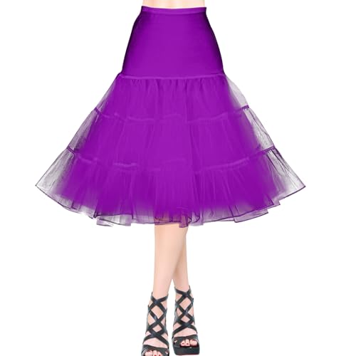AYBUY 50-tal retro underkjol, vintage A-linje underkjol klassisk elastisk rockabilly tutu-kjol för damer halvslip utklädningsfester dans, halloweenfest, dans, Lila, M