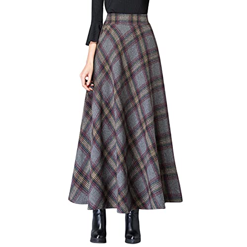 TDEOK Veckad kjol dam lång rutig midikjol svart en linje swing kjol ull klockor kjol elegant maxikjol hög midja stickad kjol stora storlekar rockabilly kjol höst vinter kjolar för kallt väder,