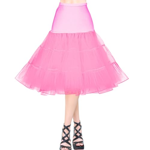 AYBUY Underkjol för dam, 50-tal vintage tyll rockabilly petticoat tyll elastisk midja, retro tutu-kjol för kvinnor, retro, 80-tal, fest, halloween, karneval, festdräkt, fuchsia, XL