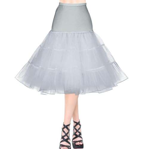 AYBUY 50-tal retro underkjol, vintage A-linje underkjol klassisk elastisk rockabilly tutu-kjol för damer halvslip utklädningsfester dans, halloweenfest, dans, Grått, M