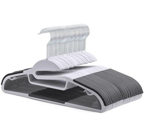 House Day 20-pack plasthängare (S-formad öppning) – med gummi och horisontell stång halkfria plasthängare, 306° vridbar, platsbesparande rockhängare för vuxna, kraftiga hängare för kostym, våta kläder