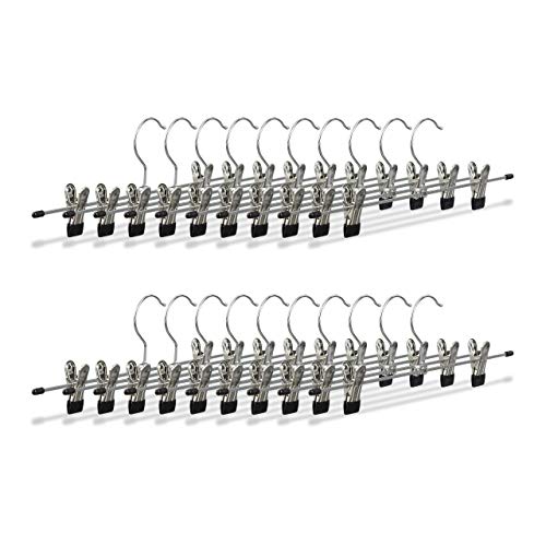 Relaxdays Byxhängare metall, uppsättning av 20 rockhängare, justerbara klämhängare, klädhängare, HBT 9 x 35,5 x 2,5 cm, silver/svart