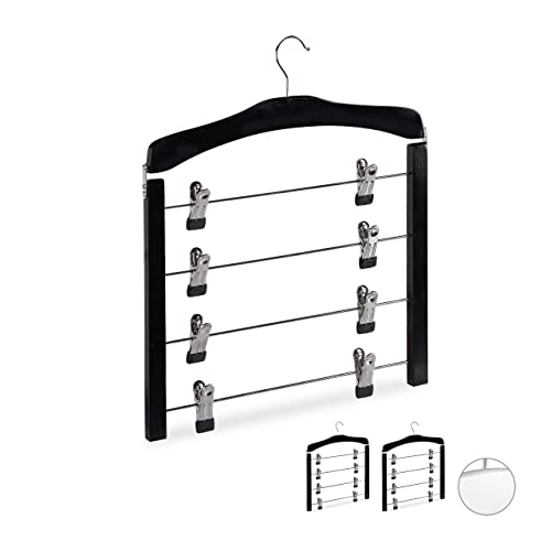 Relaxdays rockhängare flerfaldigt, set om 3, utrymmesbesparande, 360° vridbar krok, klämhängare för byxor och kjolar, trä, svart