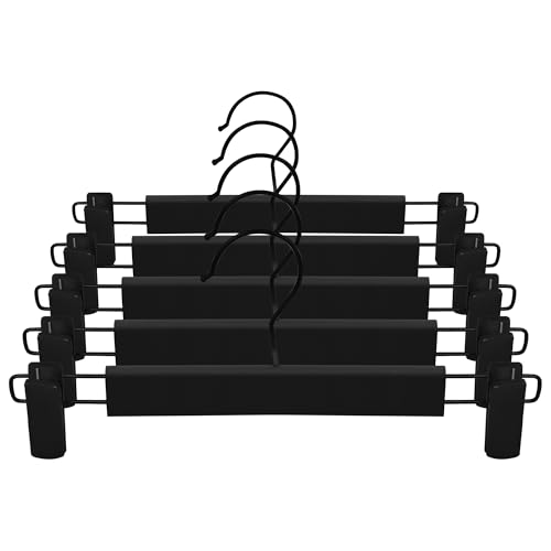 Relaxdays, svart byxbygel set med 5, 360° vridbar krok, fast stängning, rockhängare, gummerade klämmor, 26 cm, PVC, paket
