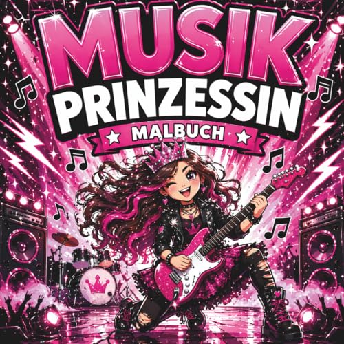 Musik Prinzessin Malbuch: Cooles und freches Prinzessinnen-Malbuch mit Rockmusik-Thema, süßen Mädchenband-Szenen und einfachen Motiven für Anfänger von 4-10 Jahren