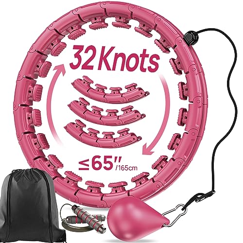 APzek 32 knutar smart vikt träning ring plus storlek, justerbar rockring med extra vänster för vuxna och nybörjare, 2 i 1 fitness massage icke fall hooola ring med spinning boll – rosa