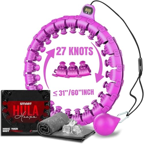 APzek 32 avtagbara knutar viktade övningsdäck i plusstorlek, inget fall, smart rockring för vuxna och nybörjare, 2 i 1 magfitnessmassage med automatisk roterande boll – lila