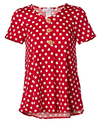 Star Vixen kvinnors armbågsärm veckad detalj linne blus, Röd/vit prick, M