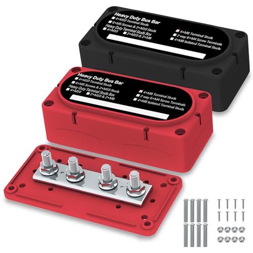 2 stycken fördelningsblock för samlarskenor, 150 A skruvklämma, strömfördelningsblock, bussbar med 6 x M6-anslutningsbultar, för buss, bil, båt, husbil, 6-polig, röd, svart