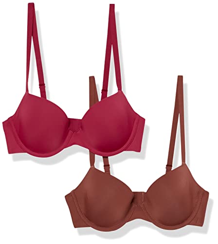 Amazon Essentials Demi Cup mikrofiber-BH, 2-pack, choklad/röd, 36DD