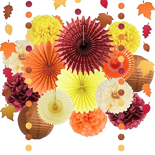 Höst festdekorationer tacksägelse dekorationer orange vinröda pappersfläktar pomponger lyktor cirkel prick höst lönn löv girlang för skörd höst födelsedag baby shower