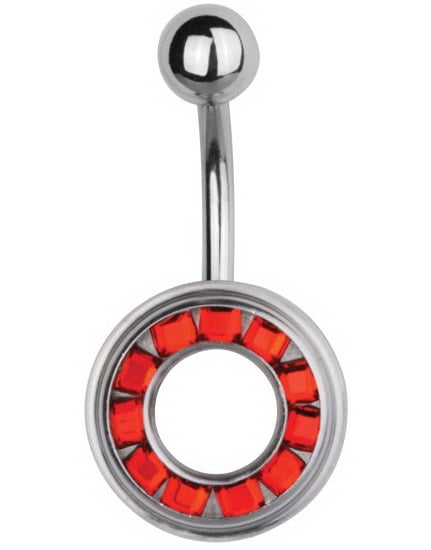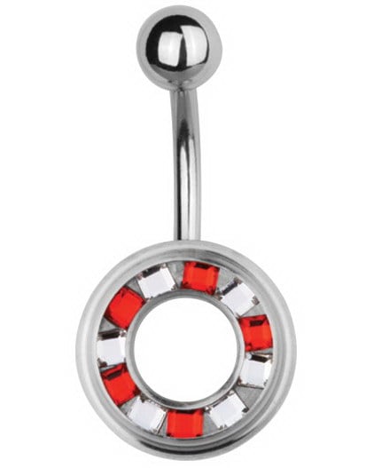 Navelpiercing med Cirkel med Röda & Vita Stenar