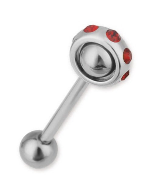 Roterande Cirkel - Silverfärgad Tungpiercing med Röda Stenar