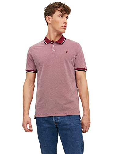 JACK & JONES Pikétröja för män, enfärgad skjortkrage, pikétröja, Röd dahlia/passform: reg W. Whisper White, XL