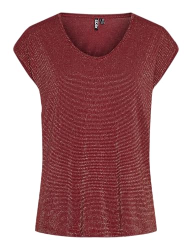 PIECES Damer Pcbillo Tee Lurex Stripes Noos Bc T-shirt, Röd dahlia/detalj: lurex guld, S