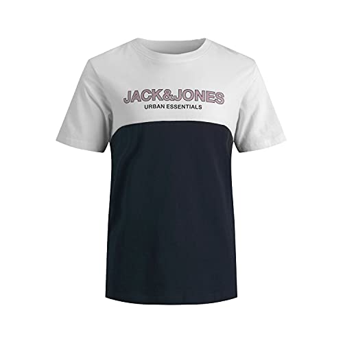 Jack & Jones Jjeurban blockerande t-shirt för pojkar rund hals Noos Jr t-shirt, Vit/tryck: röd Dahlia-marinblå tryck, 140 cm