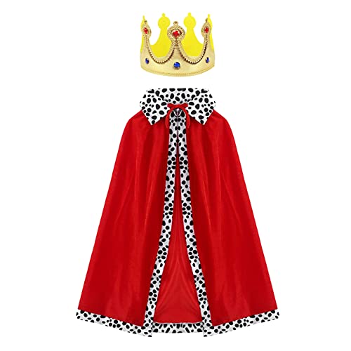 AOOWU Kunglig kappa för barn, kungsdräkt med krona, röd sammet, kunglig rock för pojkar, flickor, medeltida prins, kung, drottning, cape för halloween, maskeraddräkt, cosplay, fest, karneval, 80 cm