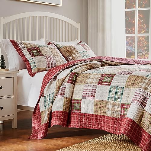 Eddie Bauer | 100% bomull vändbart och lätt sängöverkast med matchande örngott, 3-delat bäddset förtvättat för extra komfort, röd, drottning
