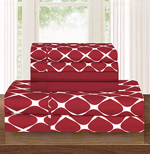 Hearth & Harbor passar madrass upp till 53 cm, dubbla borstade lakan och örngott, mikrofiber, körsbärsröd, drottning
