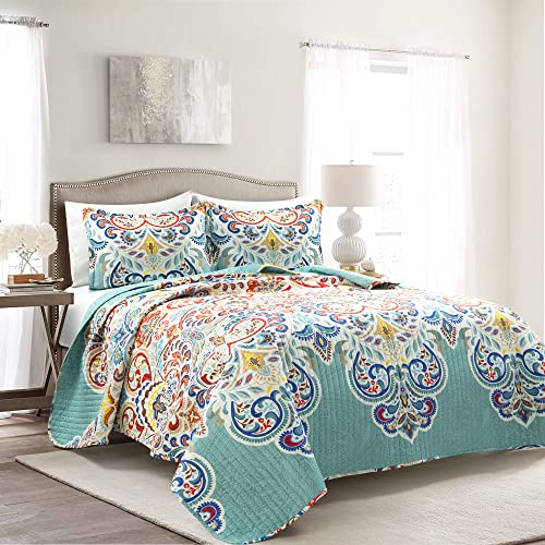 Lush Decor Boho Chic vändbar överdimensionerad 3-delad bomull täckeset, havsskum och röd, full/drottning