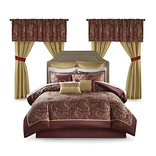 Madison Park Windom Down alternativ filt, premium 3M Scotchgard fläckfrisättningsbehandling, lätt och mjukt skydd för säng, satängkant, rouge full/drottning