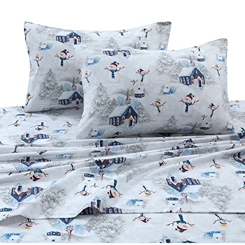 Tribeca Living SNMANSHEETQUNR tryckt flanell djup ficka lakanset, drottning, snögubbe marinblå/röd