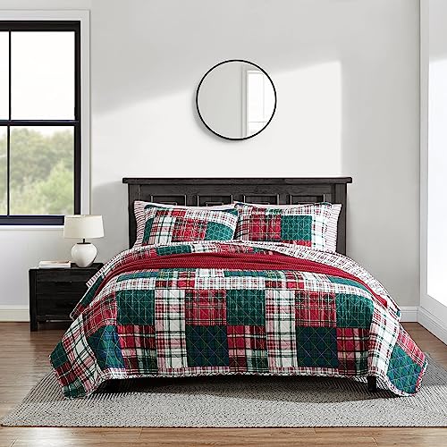 Madison Park Essentials Parkston Rutigt täcke, matchande skam, 3M Scotchguard fläckfrigörande skydd, allergivänlig sängkläder alla årstider, hel/drottning, röd, 3 delar